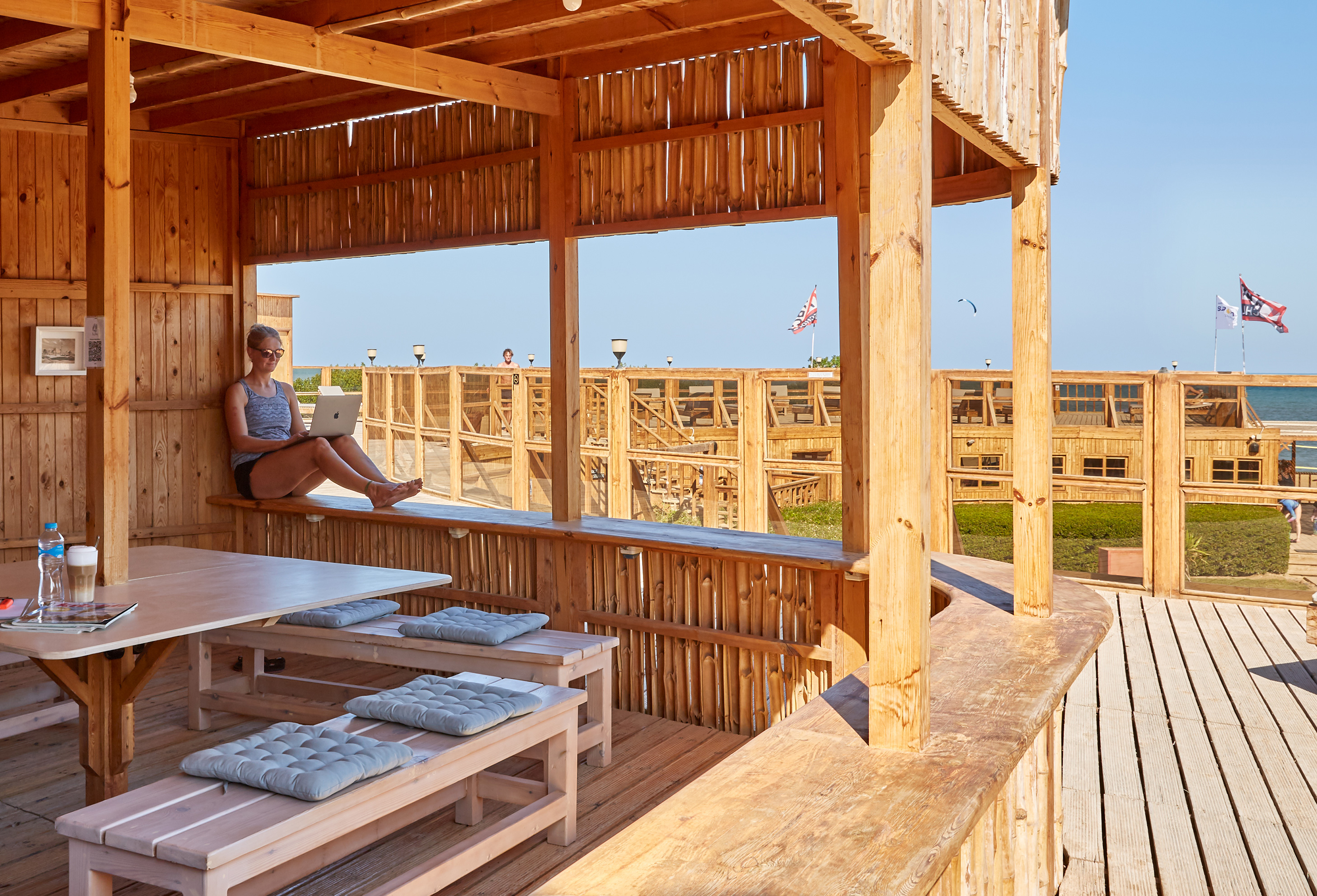 Nach dem Kitesurfen geniesst du frische, gesunde Köstlichkeiten in unserem Restaurant nebenan oder kühle Getränke an der Beach Bar. Relaxe am Swimming Pool (inklusive), treffe Freunde fürs Leben und erlebe deinen Kiteurlaub deluxe.